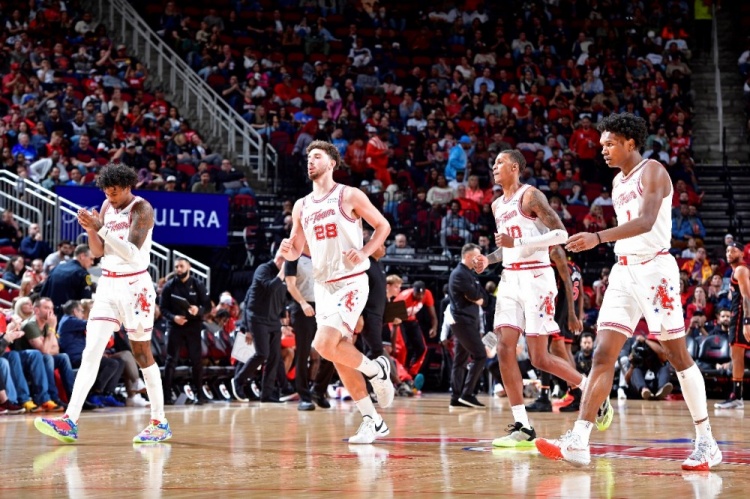 本赛季常规赛,火箭主场29胜12负,客场23胜18负。很难想象这支平均年龄25岁的青年军更为出色的是防守,常规赛火箭场均失分109.8分(联盟第6),防守效率110.3(联盟第5),很好诠释了主帅乌度卡“无限换防+拼抢至上”的防守哲学。全力拼抢的火箭场均可以拿到48.5个篮板,联盟第1。百回合丢109.6分联盟第4少,只有雷霆、魔术、快船比火箭更优秀。