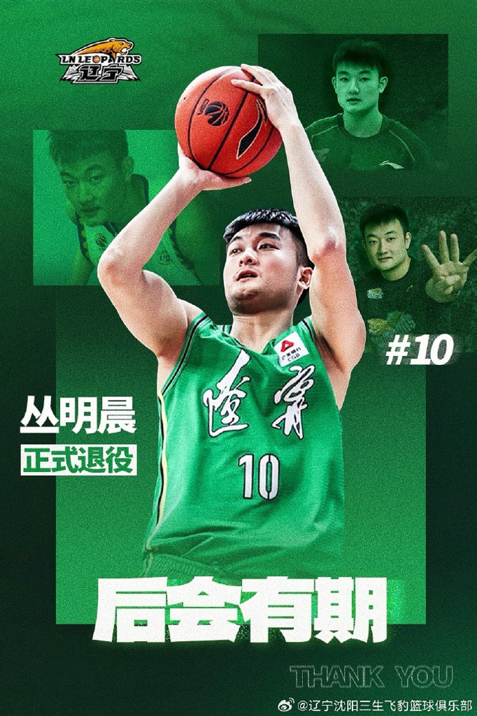 经与丛明晨本人充分沟通并尊重其个人意愿,辽宁沈阳三生飞豹篮球俱乐部正式宣布:球队功勋球员丛明晨自即日起结束职业篮球运动员生涯,开启人生新篇章。在此,俱乐部向丛明晨为辽宁篮球十余载的倾力付出致以最诚挚的感谢,并送上最温暖的祝福。