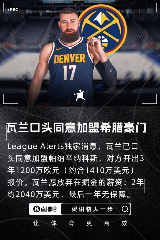 League Alerts表示,瓦兰丘纳斯愿意放弃在掘金的全部薪资,以求离开NBA。