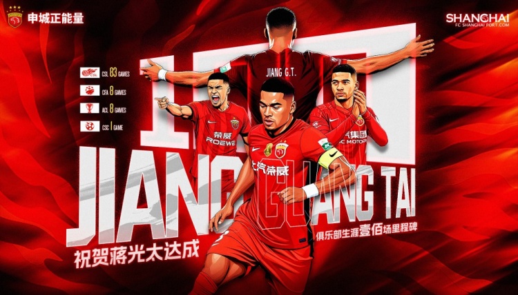 在新赛季亚冠精英联赛首场上海海港0比3神户胜利船的比赛中,蒋光太首发出战,达成其个人代表俱乐部出战各项赛事的百场里程碑。