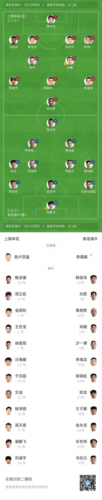 04月16日讯 北京时间20:00,中超第7轮,上海申花vs青岛海牛。赛前,双方公布首发名单。