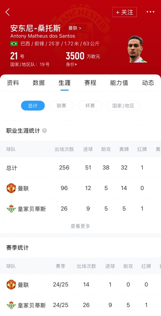 曼联当初以将近1亿欧元从阿贾克斯签下安东尼,如今为收回部分投资,要求4000万欧元的转会费。而贝蒂斯今夏最多愿意支付一半,也就是分两期支付:今年支付2000万,2026-2027赛季再支付2000万。双方可能在折中的价位上找到解决这个僵局的办法。